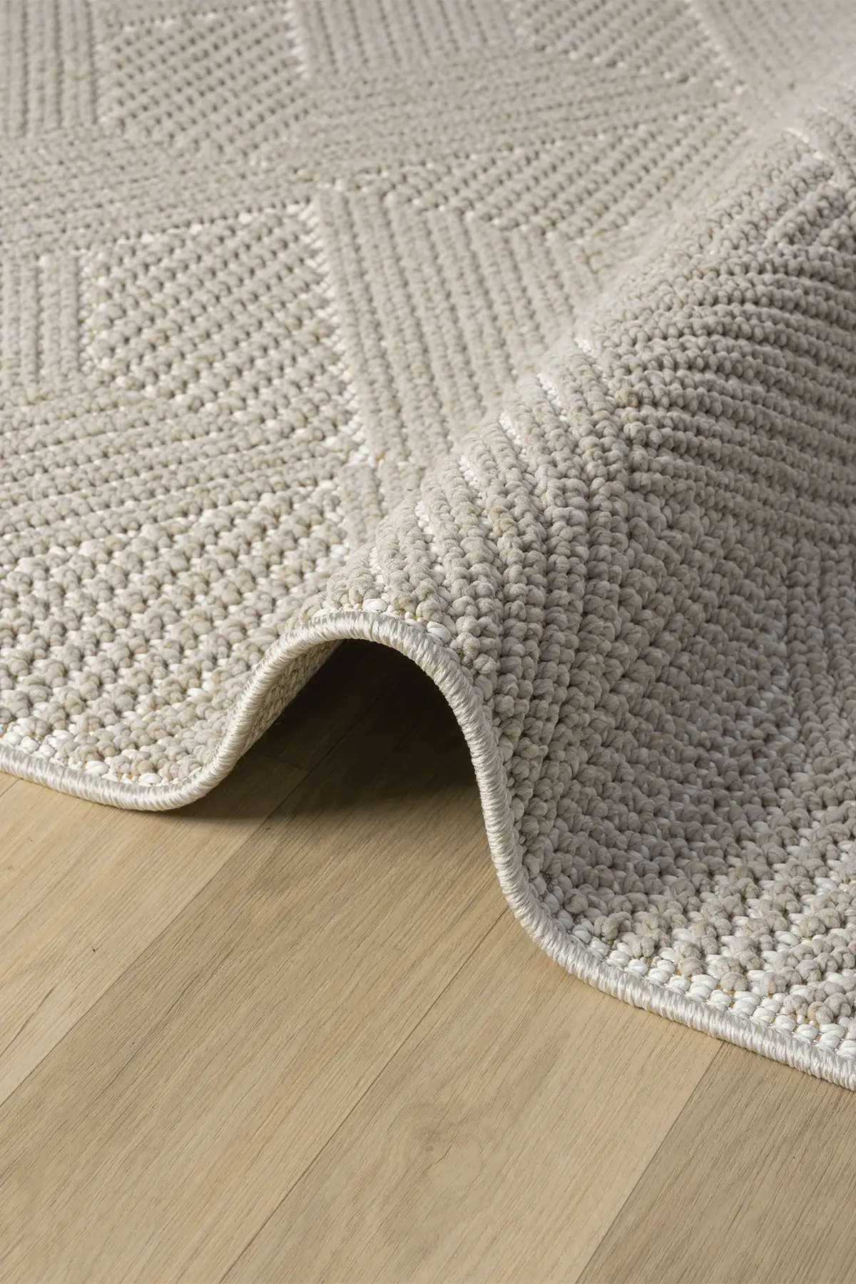 Jüt tabanı, doğal yapısı sayesinde hem çevre dostu hem de sağlamdır. %70 polyester ve %30 polipropilen iplik karışımı sayesinde halı, hem leke tutmaz hem de kolay temizlenebilir yapıdadır. Yüksek trafiğe sahip alanlarda bile formunu korur.
